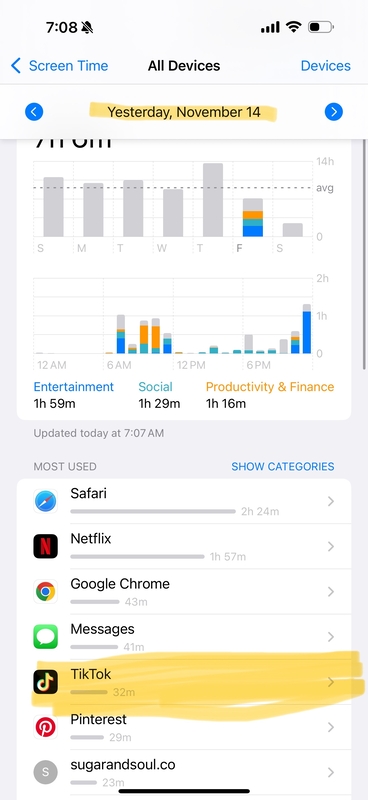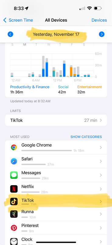 Only on TikTok for 30 minutes daily, if I achieve the goal for 2 consecutive days then I will decrease the time by 5 minutes.
