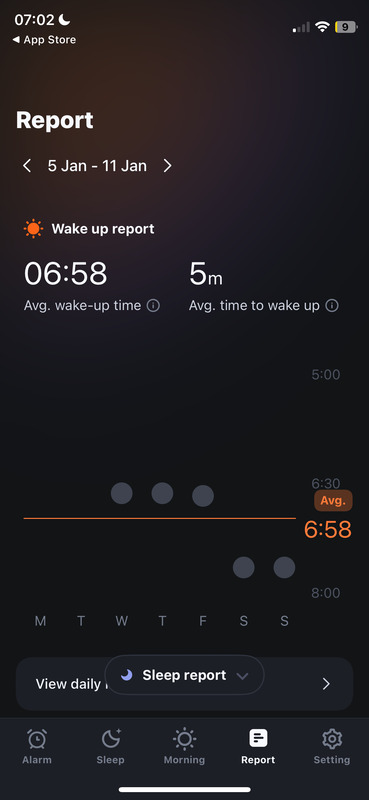 get up at 6.30/7.30 each week day/at the weekend unless pre-agreed due to any unavoidable reasons or waived after valid explanations given - I will use the bar code wake-up alarm function of the Alarmy app and upload the daily report results for accountability