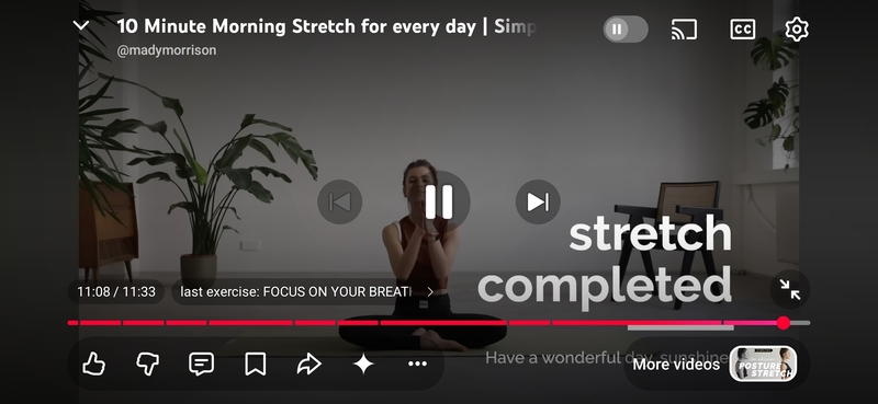 1 mile run, 10 minutes of stretching, no mindless scrolling (phone is allowed, but there must be a purpose.)