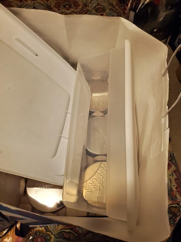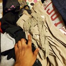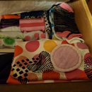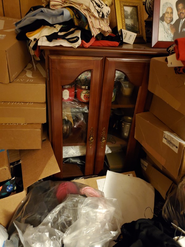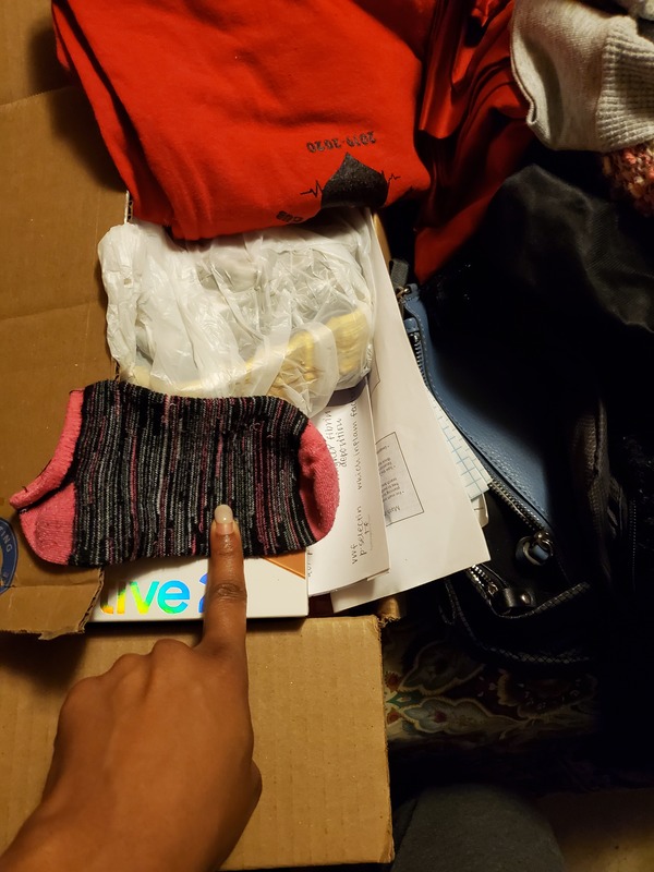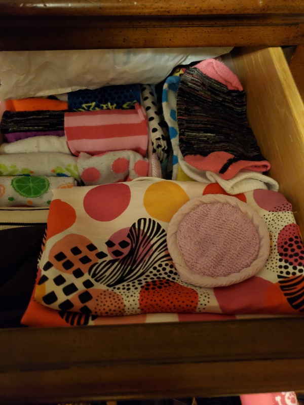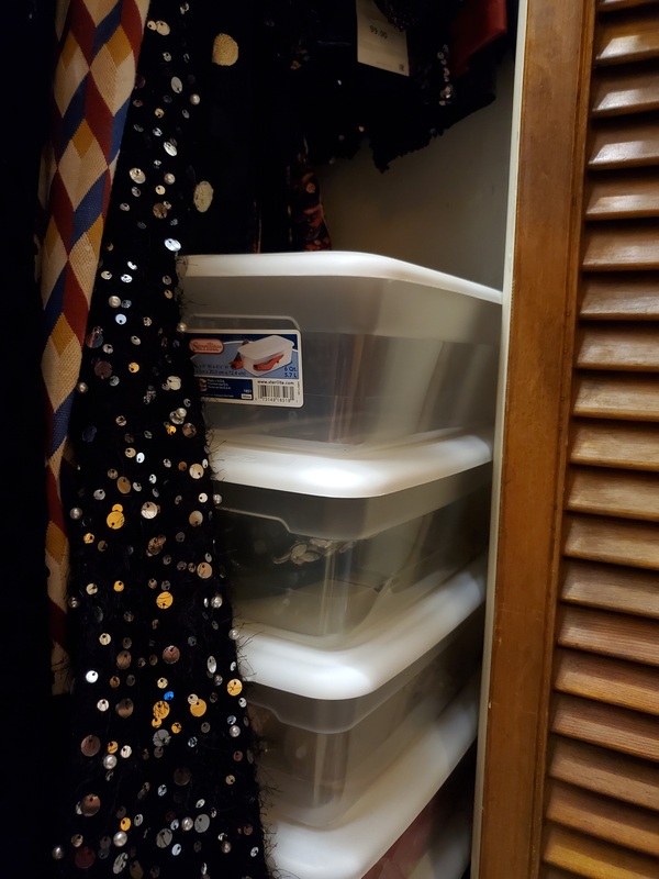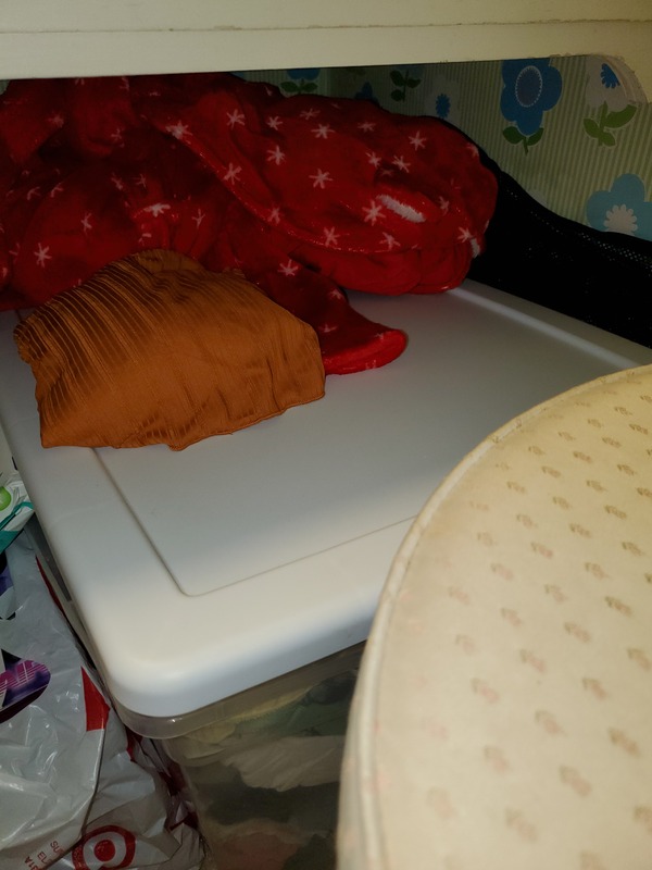 Two shoes that were on bed that O can't find the match to right now. Thinking that they're likely in this shoe bag. So I'm putting them here with other shoes that need to be put away.